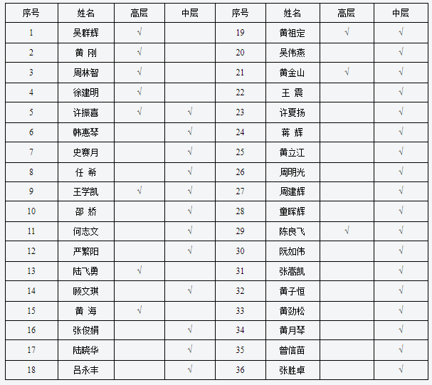 根据《浙江良和交通建设有限公司领导干部竞聘上岗实施方案》,公司本次竞聘设中层副职及以上岗位26个(其中2个为述职岗位),共计37人报名。经前期报名公示及竞聘领导小组资格审查, 36人符合竞聘条件,现予以公示(名单按现所在部室/单位顺序排列):