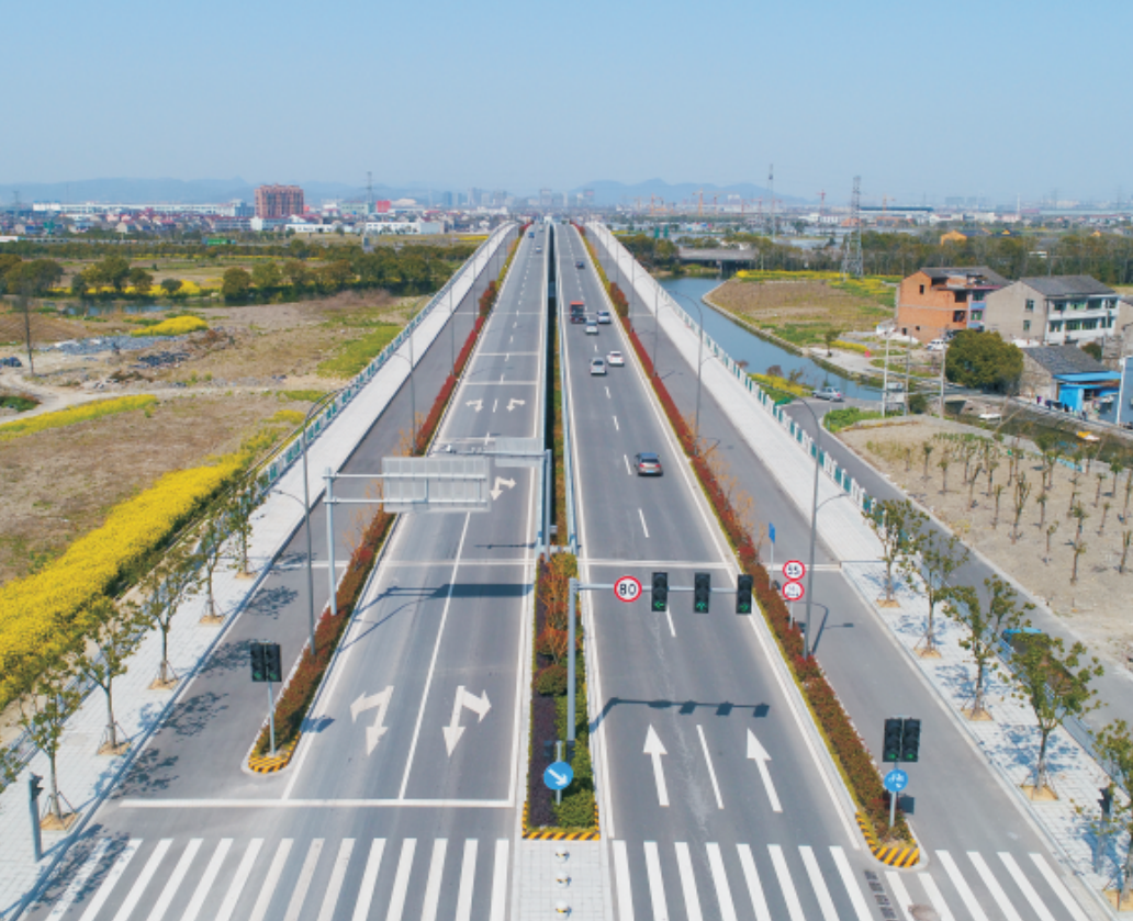 工 程 概 况 : 宁 波 市 鄞 州 区 首 个 公 路 工 程 B T 项 目 , 项 目 按 一 级 公 路 标 准 设 计 , 包 含 路 基 、 路 面 、 桥 涵 、 绿 化 、 交 安 设 施 及 预 埋 管 线 工 程 , 总 长 7 . 5 8 公 里 , 其 中 软 基 长 6 公 里 。 全 线 共 有 1 3 座 桥 , 含 跨 杭 甬 高 速 大 桥 8 6 0 米 / 1 座 ( 最 大 跨 径 4 0 米 T 梁 ) 。